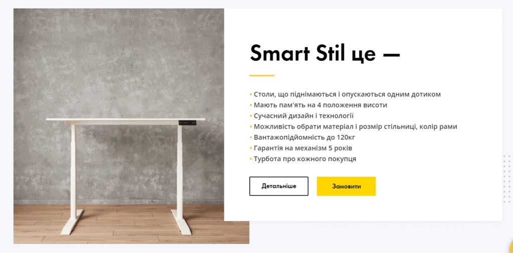 У 2020 році до нашої агенції звернулася компанія Smart Stil. Основна діяльність – це продаж столів для роботи стоячи, які набирають популярності разом із розвитком IT-індустрії. Це столи, які дозволяють змінювати положення для роботи стоячи, що не тільки підвищує продуктивність, але також позитивно впливає на опорно-руховий апарат.